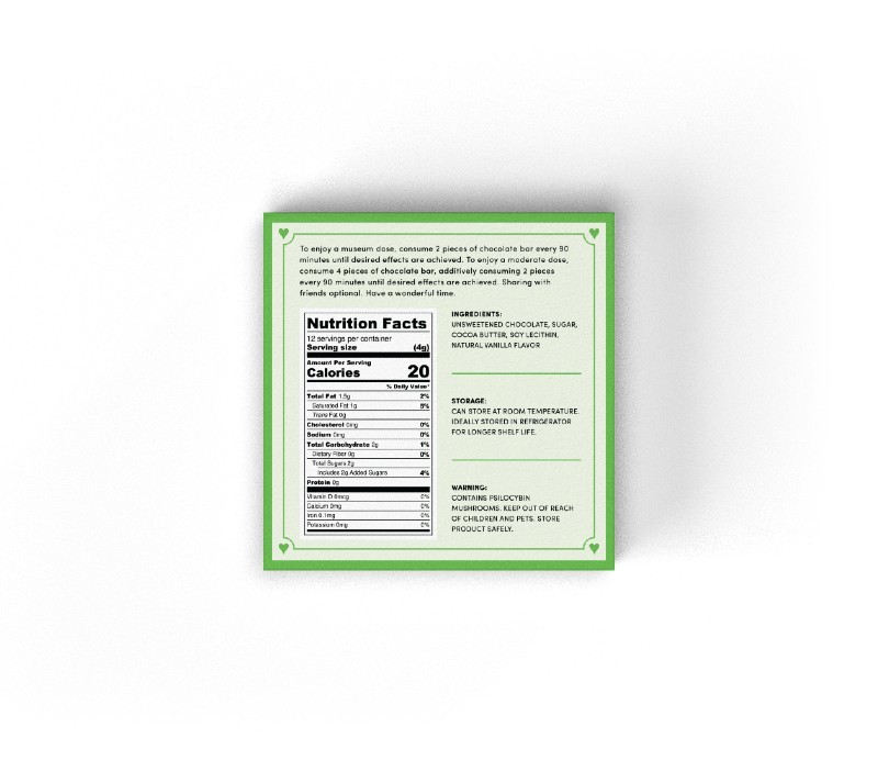 To enjoy a moderate dose, consume 6 pieces of chocolate bar, additively consuming 3 pieces every 90 minutes until desired effects are achieved. To enjoy a mega dose, arrange to have a trusted sitter remain present, consume 18 pieces of the bar, additively consuming 3 pieces every 90 minutes until desired effects are achieved. Sharing with friends optional. Enjoy falling down the rabbit hole, and have a wonderful time